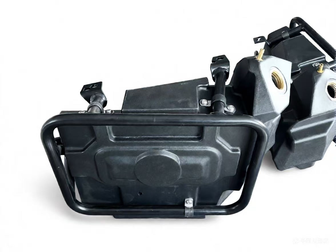- Holds 15 liters. 7.5L for each tank. Left and right ranks.